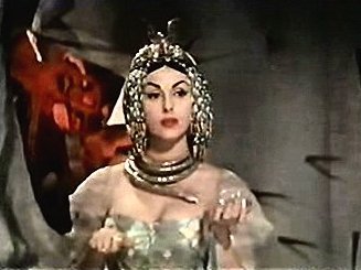 Toto’ is greeted and romanced by Cleopatra (Maria Frau) as her hero returned at