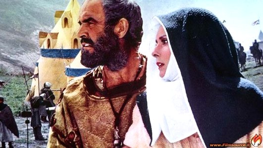 La leggenda di Robin Hood ha fornito non pochi spunti alla cinematografia moderna. Tra i molti film prodotti, Robin Hood (1938, regia di Michael Curtiz), Robin Hood, la leggenda (1991, regia di John Irvin), Robin Hood, principe dei ladri (1991, regia di Kevin Reynolds), sino al recente Robin Hood di Ridley Scott (2010); negli anni Settanta (1976) si distingue questo bel film di Richard Lester. La pellicola ha inizio con tre mele che marciscono nel fotogramma immediatamente successivo ed una croce che in realtà è l’impugnatura di una spada. È quindi palese l’intento del regista di rivedere il mito di Robin Hood in chiave a volte critica a volte ironica. «è difficile […] rintracciare nel cinema hollywoodiano o anglosassone in genere un film che abbordi il mondo medievale da un angolo visuale comico-realistico. Per esso il Medioevo è pur sempre un palcoscenico affollato di cavalieri erranti, dove pare non ci sia posto per la moltitudine affamata e sporca che tutti sappiamo essere stato il nerbo della popolazione. Al punto che, quando Lester mostrò i due leggendari eroi immersi nella pulsante e limacciosa quotidianità, alle prese l’uno con gli acciacchi dell’età, prematuramente manifestatisi in seguito alle molte notti passate all’addiaccio, l’altra impegnata a districarsi fra maiali e galline e altri animali domestici che ingombravano il cortile del convento in cui s’era ritirata, ci parve di respirare, pure fra il lezzo del letame, una boccata d’aria nuova nel cinema anglo-americano, ancora una volta cimentatosi con il lontano passato» (V. Attolini, Tre altri Medioevi sugli schermi, in «Quaderni Medievali», n. 19, giugno 1985, p. 145). Mancano i facili eroismi, la violenza e tutta una serie di momenti cavallereschi, però ripresi nel drammatico gesto finale di Marian (l’avvelenamento di sé e dell’amato). Allo stesso modo, «nella luce autunnale del film si perpetua ancora una volta il mito, mirabilmente espresso nella finale metafora della freccia lanciata da Robin» (freccia scagliata con il tipico long bow, arco lungo, alto un paio di metri e in grado di lanciare frecce fino ad oltre duecento metri) «che l’immagine conclusiva fissa […] nell’eternità senza tempo della leggenda. […] Robin e Marian si colloca infatti nel punto di incontro fra la mitografia del personaggio e l’esigenza di una più spregiudicata e perfino scanzonata revisione della tradizione. Scompare da questo film ogni forma di abbellimento esteriore della realtà, che viene rappresentata anche nella sgradevolezza del quotidiano, come, ad esempio, nel brano in cui Robin riesce a trovare il convento che è diventato la dimora di Marian: un casolare agricolo diroccato affollato di animali domestici, che ha ben poco di quei luoghi di lavoro e preghiera cui rimanda l’idea del monastero medievale» (V. Attolini, Robin Hood sullo schermo, in «Quaderni Medievali», n. 33, giugno 1992, pp. 101-102).