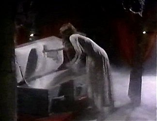 Hyacinth getting into a coffin but the vampire spots her and attacks the girl.