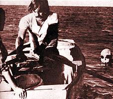 «Shock Waves has a trite and simple plot: a group of passengers on a small rented boat come across old war wreckage and an island where an old Nazi commander resides by himself…sort of. They also become unfortunate guests to hideous scientific experiments that outlasted the war for over several decades, a plotline that bears some resemblance to that of The Flesh Eaters The film has three principle actors pulling weight (the supporting cast works very well, in their respected roles – don’t want to leave them out): John Carradine, Peter Cushing and Brooke Adams in her first real role».