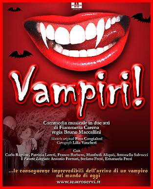 Trama: «Che cosa ci fa un vampiro sul palco di un club rumeno nella veste di cantante folk? E perché decide di piombare in Italia, nella casa di una famiglia tipica del mondo occidentale, dove la madre è una virago, il padre è un sottomesso e il figlio un incapace? In Vampiri, commedia musicale “all’ultimo sangue”, l’ordine delle cose si è capovolto: colui che prima era un