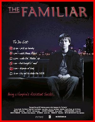 Plot Summary, Synopsis, Review: IMDb - taliesinttlg.blogspot.co.uk - en.wikipedia.org/wiki - fatallyyoursreviews.blogspot.it - horrorphilia.com - facebook.com - stalknslash.blogspot.it: «Kody Zimmerman’s new 22 minute short The Familiar is a well produced, excellently directed, and nicely written film. Not terrifyingly scary, not hilariously funny, but an easy-to-watch debut showcase of Zimmerman’s writer/director talents. Sam Matheson (Torrance Coombs) has quite literally found himself saddled with ‘the job from hell’. Following a childhood obsession with Vampires, he is at first delighted to be taken on as Simon Bolivar’s ‘Familiar’, a Familiar is basically a vampire’s Housemaid/P.A./Chef - and all round flunky. On the understanding that he will one day be turned into a vampire as a reward for loyal service, Sam is, for a while, happy in his work. Time moves on however, and after a few years of disposing of bodies, finding victims, dressing and grooming Boliver (because of course he cannot see his own reflection – and I’d have liked to see Sam have a bit of fun with this one!), Sam is disillusioned and realises that all he really wants is his freedom back. Of course, Boliver, used to being waited on hand and foot is not going to let him go without a fight.... For a 22 minute short The Familiar certainly packs in a good story, and because it isn’t too long it moves along at a good steady pace and holds the viewer’s interest. There’s some good comedy in there too, so kudos to Zimmerman for not taking his first film so seriously that he didn’t have fun with it. The Familiar is certainly superior to most of the short films I’ve seen on the festival circuit recently. The camera work, the direction, the writing and the performances all exceeded my expectations and I’m sure we can expect great things from Kody Zimmerman».