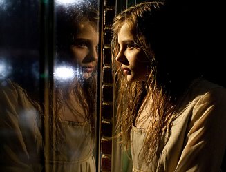 Moretz) appears over his shoulder. A young girl wise beyond her years, Abby just